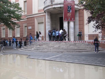 intorno alle 5 gli uomini della Attiva che sono in servizio per effettuare la raccolta dei rifiuti e lo svuotamento dei cassonetti, si sono accorti di un rumore sordo che proveniva dal sottosuolo, proprio in corrispondenza dei cassonetti del pattume posti dinanzi al liceo Classico ‘D’Annunzio’, un rumore simile al ribollire di una pentola sul fuoco. Poi, proprio dinanzi ai loro occhi, si è aperta una voragine sotto il marciapiede lato nord e un misto di acqua, fango e sabbia, di colore giallognolo, ha invaso completamente la strada, acqua che usciva a fiotti dal sottosuolo. Gli uomini della Attiva hanno subito allertato la Polizia municipale della rottura e, mentre una pattuglia dei vigili è accorsa sul posto, provvedendo a chiudere al traffico via Venezia, dall’incrocio con via Bologna, per dirottare la viabilità verso via del Concilio, dal Comando della Polizia municipale è partita la telefonata al call center dell’Aca per la segnalazione del guasto chiedendo l’intervento della squadra del pronto intervento, che peraltro ha la reperibilità proprio per gli interventi in orario straordinario. Nel frattempo sul posto sono intervenute le unità dei Vigili del fuoco e del Servizio Manutenzioni del Comune che hanno aiutato e sostenuto gli uomini della Attiva nello spostamento dei tre cassonetti dei rifiuti posti proprio a ridosso della voragine, e hanno sostenuto il carro attrezzi allertato dalla Polizia municipale, con il vicecomandante Mario Fioretti e il maggiore Danilo Palestini, per lo spostamento delle auto dei residenti parcheggiate sul lato nord di via Venezia, dinanzi al liceo classico, completamente impantanate nel lago, uno spostamento