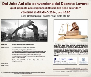 PESCARA – Venerdì 20 giugno 2014 ,alle ore 10.00 presso la sede di Confindustria, in Via Raiale 110 bis a Pescara,si terrà il Seminario del titolo “Dal Jobs Act alla conversione del Decreto Lavoro: quali risposte alle esigenze di flessibilità delle aziende ?”