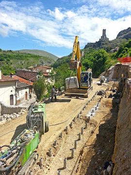 Si è trattato di un intervento lungo e complesso che ha richiesto una fase di analisi attraverso uno studio geologico e geotecnico, per individuare le cause responsabili del movimento franoso, ed una, successiva, di progettazione dell’opera per la messa in sicurezza tramite la stabilizzazione ed il consolidamento dell’area.