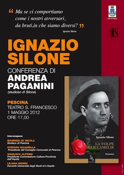 PESCINA (AQ) – Oggi, 1 maggio, alle ore 17.00, presso il Teatro San Francesco, a Pescina, in occasione dell’anniversario della nascita di Ignazio Silone, il prof. Andrea Paganini terrà una conferenza sul romanzo siloniano “La volpe e le camelie”.