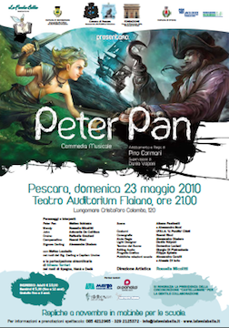 CHIETI – Al Teatro Supercinema di Chieti, il giorno 20 Dicembre alle ore 10.00, in un anteprima dedicata agli studenti delle scuole della città, sarà di scena il musical Peter Pan. Dopo il grande successo ottenuto a Ortona e a Pescara nel mese di Novembre, la compagnia la Favola Bella di Pescara,in collaborazione con l’Assessorato alla Pubblica Istruzione del Comune di Chieti e la Fondazione Carichieti, torna con lo spettacolo che ha già incantato, in due settimane di repliche, circa 8.000 studenti.