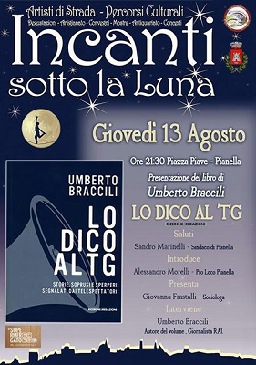 PIANELLA (PE) – Giovedì 13 agosto, alle ore 21:30, nel suggestivo centro storico di Pianella, è in programma la presentazione del libro del giornalista Rai Umberto Braccili “Lo dico al Tg” (Ricerche&Redazioni Editore).