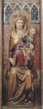 La mostra propone una ventina di opere fra dipinti su tavola e sculture lignee, databili tra la fine del XII e gli esordi del XVI secolo, in gran parte salvate dai vigili del fuoco dal Museo Nazionale d’Abruzzo dopo il terremoto dell’aprile 2009. Le opere esposte emozionano il pubblico per la loro maestosa solennità delle iconografie mariane che nel Rinascimento assumono accenti più emotivi e rappresentano una devozione mariana di eccezionale levatura, che affonda le sue radici millenarie nell’amorevole madre terra. Questi capolavori ben rivelano come l’Abruzzo sia stato un crocevia di culture e un centro di elaborazione di spinte culturali aggiornate, grazie ai frequenti contatti con i territori d’oltralpe e l’Oriente bizantino, sulle rotte dei pellegrini e dei commerci lungo la Via degli Abruzzi e per le vie del mare.