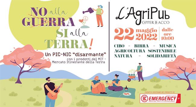 NOTARESCO – “No alla guerra, si alla terra!” È questo il mood che caratterizzerà il pic-nic, dalla bontà “disarmante”, organizzato nello spazio antistante a L’Agripub Opperbacco (via Casarino 21, a Notaresco) in collaborazione con il gruppo Emergency Teramo, domenica 22 maggio. Dalle ore 10 in poi un’intera giornata da trascorrere insieme in compagnia di Emergency a sostegno dei suoi progetti, in cui godere di buon cibo, relax, musica, aria di campagna e convivialità!