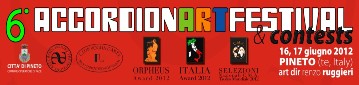PINETO (TE) – La sesta edizione dell’ Accordion ArtFestival & Contest si svolgerà il 16 e 17 giugno 2012 a Pineto . Fra gli eventi: