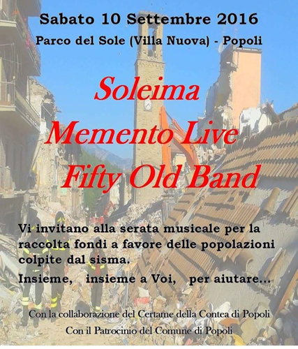 “Memento Live”, “Soleima” e “Fifty Old Band” live per aiutare le popolazioni terremotate