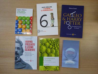 I sei libri finalisti rimasti a contendersi la vittoria sono Che cos’è la chimica. Un viaggio nel cuore della materia di Peter Atkins (edito da Zanichelli), I numeri ci somigliano di Alex Bellos (Einaudi), Galileo & Harry Potter. La magia può aiutare la scienza? di Marco Ciardi (Carocci), Marmo pregiato e legno scadente. Albert Einstein, la relatività e la ricerca dell’unità in fisica di Pietro Greco (Carocci), La matematica e la realtà di Giorgio Israel (Carocci), Il fantasma dell’Universo. Che cos’è il neutrino di Lucia Votano (Carocci). Il vincitore emergerà dai voti che sono stati assegnati dalla giuria di studenti e studentesse.