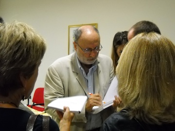 Per ultimo ha preso la parola Peppe Cirillo, che preferisco chiamare “Peppino”, avversario in alcuni “scontri” tennistici ma soprattutto grande amico. L’Autore del libro ha messo in evidenza alcuni personaggi citati nella sua opera e ha proiettato alcune delle foto riportate in “Come eravamo”. Ha ricordato alcuni tennisti del Circolo Tennis Pescara, che si sono messi in evidenza in campo nazionale: Marina e Francesca Crescenti, Arturo Massignani (con essi vanno ricordati Luciano De Nicola, finalista in un campionato italiano di terza categoria, Gianni Ruggeri, campione italiano di doppio allievi e doppio Juniores, Massimo Ruggeri, Giancarlo Iezzi, Piero Rapposelli per citarne alcuni fino agli atleti attuali Gianini Fernando, Marchegiani Patrizio, Pantalone Marco, Alice Matteucci, vincitrice nel 2009 del Torneo Internazionale under 14 “Tennis Europe”, e dulcis in fundo Anastasia Grymalsky, laureatasi campionessa italiana di singolo e doppio di seconda categoria sui campi del C.T. La Campagna di Francavilla al mare).