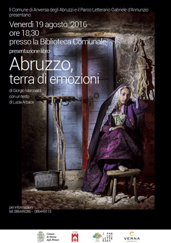ANVERSA DEGLI ABRUZZI (AQ) – Oggi, venerdì 19 agosto, alle ore 18.30, presso la Biblioteca comunale di Anversa degli Abruzzi, si terrà la presentazione di “Abruzzo, terra di emozioni” di Giorgio Marcoaldi con un testo di Lucia Arbace.