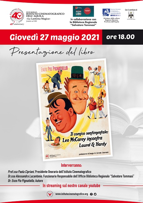 Giovedì 27 maggio 2021, dalle ore 18.00, sarà possibile seguire in streaming, sul canale YouTube dell’Ente, la presentazione del libro Il Comico sentimentale: Leo McCarey incontra Laurel & Hardy con gli interventi della Prof.ssa Paola Cipriani, Presidente Onorario dell’Istituto Cinematografico, della Dr.ssa Alessandra Lucantonio, Funzionario Responsabile dell’Ufficio Biblioteca Regionale “Salvatore Tommasi” e dell’autore Dr. Enzo Pio Pignatiello.