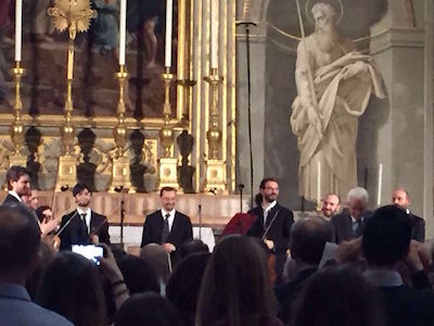 Il complesso intero e il violino di spalla e solista Daniele Orlando sono stati protagonisti di una performance di alto spessore e valore artistico nonostante venissero da una progressione di 4 concerti consecutivi da giovedì a domenica rispettivamente a L’Aquila, al Teatro Palladio di Roma, ad Albano Laziale e infine al Quirinale.