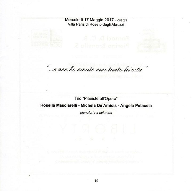 In programma fantasia su temi d’opera di Verdi, Bellini, Gounod, Saint-Saens, Donizetti, Bizet e fantasia su temi di Puccini e i suoi amici con musiche di Puccini, Mascagni, Boito, Leoncavallo, Tosti.