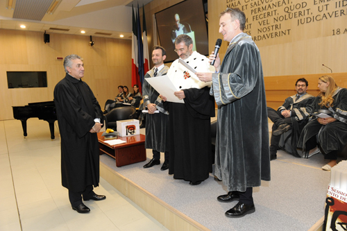 «Quello che stiamo vivendo oggi è un momento molto importante ed emozionante per noi tutti – ha introdotto il Professor Stefano Traini, Preside della Facoltà di Scienze della Comunicazione -, ma è stata anche un’avventura molto bella. L’ospite che abbiamo voluto per la Cerimonia di oggi è il Magnifico Rettore, perché ci ha sempre spinti a curare la formazione degli adulti e ad andare avanti in questo progetto. Un percorso cominciato con un convegno, nel 2013, e divenuto oggi una realtà consolidata, il cui punto di svolta è stato segnato dal partenariato stretto con la Coorte professionale degli agenti di commercio, che ha portato alla definizione di un percorso basato sulle specifiche esigente degli agenti di vendita, ma con un’attenzione anche per i giovani che intendano intraprendere questa professione».