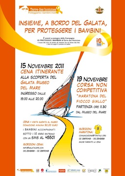 affermano gli organizzatori che invitano alla cena preparata sotto la sapiente supervisione di esperti chef, permettendo anche una visita notturna suggestiva del Museo del Mare di Genova. Gli ospiti potranno anche approfittare per iscriversi alla corsa di sensibilizzazione che, in occasione della Giornata Mondiale per la Prevenzione dell’Abuso sui Bambini, (19 novembre) Terre des Hommes, assieme al Comune di Genova e i Podisti da Marte, organizza invitando tutti i runner e le famiglie a aderire.