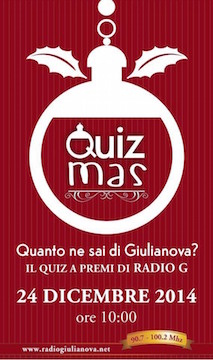 Innumerevoli sorprese ed altri ospiti in studio aspettano i radioascoltatori che potranno seguire il gioco oltre che in diretta, anche in streaming sul sito www.radiogiulianova.net. Un ringraziamento particolare infine va alla grafica Caterina Diani, realizzatrice del logo “Quizmas”.