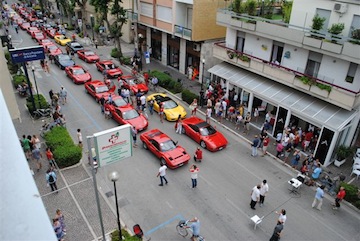 MARTINSICURO (TE) – La scuderia Ferrari Club Villa Rosa rende noto che dopo la giornata di ieri, con la massiccia presenza di turisti che hanno ammirato i bolidi della casa di Maranello nelle località turistiche di Giulianova e Tortoreto, la seconda giornata di oggi è dedicata alla Val Vibrata: Martinsicuro, Colonnella, Alba Adriatica e Villa Rosa. Quest’anno il club gongola visto che per la prima volta si è sfiorato il numero di 50 auto iscritte. Il più soddisfatto di tutti è l’attuale Presidente Dino Natali, il quale ha indossato, in questa due giorni, la maglia ufficiale di gara della Ferrari donata e autografata dagli attuali piloti della casa modenese Fernando Alonzo e Felipe Massa per il 10° anno di attività ininterrotta del club vibratiano. Dino Natali ha avuto parole di elogio per i suoi oltre 100 iscritti e soprattutto per il suo staff: Riccardo Guercioni (vice), Gabriele Barcaroli, Vinicio Crescenzi, Silverio Rosati, Felice Cruciani e Armando Di Sante, tutti consiglieri e il suo portavoce e addetto stampa, Walter De Berardinis, tutte persone unite dalla passione per il bolide rosso.