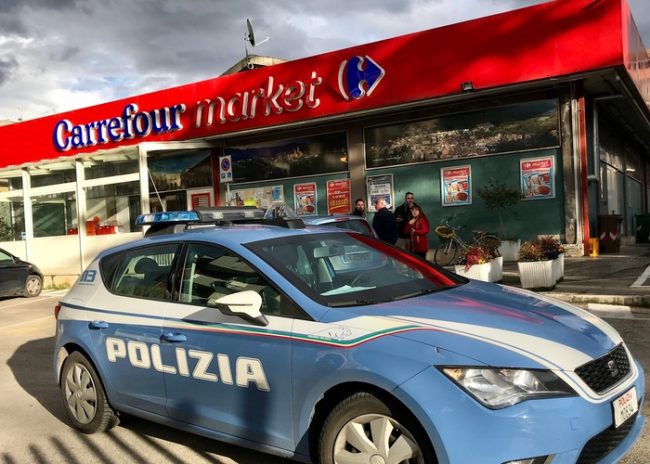 SULMONA – Armati di una pistola e di un coltello sono entrati, in due, nel supermercato Carrefour di via L’Aquila, a Sulmona, e per evitare che fosse dato l’allarme hanno obbligato ad entrare con loro il giovane che di solito aiuta i clienti a riporre i carrelli. Magro il bottino, circa 300 euro, che si sono fatti consegnare dall’unica cassiera in quel momento in servizio. La rapina è avvenuta ieri pomeriggio.