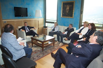 L’AQUILA – Nel pomeriggio martedì,14 settembre, si è svolta, presso il Palazzo dell’Emiciclo, una riunione con i presidenti delle sei commissioni permanenti, della commissione di vigilanza e quella speciale (elettorale e statuto). L’incontro,convocato dal Presidente del Consiglio regionale, Nazario Pagano, era finalizzato a programmare il calendario delle sedute degli organismi consiliari, organizzare l’attività legislativa e migliorare la qualità normativa.Nella riunione si è anche focalizzata l’attenzione sulla nuova legge relativa al riordino delle indennità, approvata ad agosto dal Consiglio regionale, che prevede anche con l’entrata in vigore del testo normativo, sanzioni per i consiglieri regionali che non partecipano all’attività consiliare.