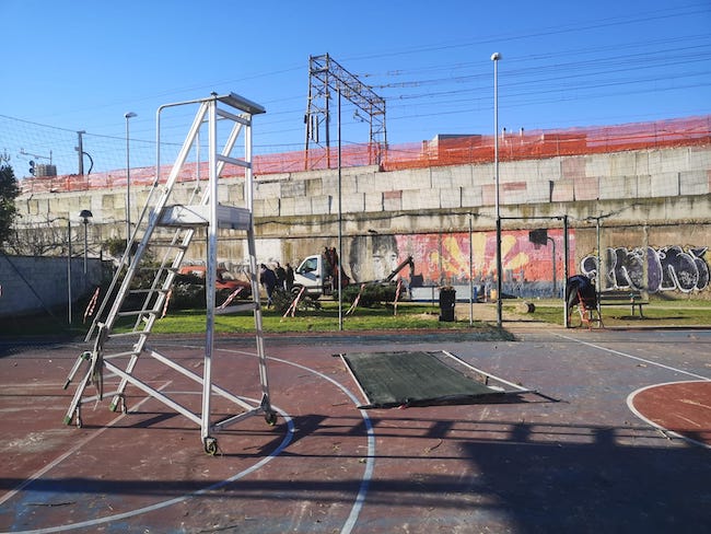 Il campo verrà interamente recintato e dotato di un impianto di video sorveglianza per scongiurare il ripetersi di altri atti deplorevoli da parte di balordi. La società Ferrovie dello Stato, inoltre sta installando dei pannelli fono assorbenti per rendere l’area meno impattante dal punto di vista del rumore. Nella parte terminale del parco abbiamo previsto un’area sgambamento per migliorare il benessere dei cani e dei loro padroni. Infine, come ciliegina sulla torta, le mura perimetrali verranno intonacate e il playground del campo da basket, compreso le parti circostanti, saranno oggetto di un’opera di street art dal tema sportivo. Infine è prevista una nuova segnaletica verticale”.