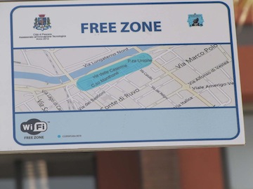 Fi gratuita, installata dal Comune, sull’intero centro storico di Pescara : residenti, operatori commerciali e fruitori di piazza Unione, via delle Caserme, corso Manthonè, via Corfinio e via Catone, potranno navigare su internet per due ore consecutive con possibilità di riconnettersi per altre quattro ore successive, un’occasione rivolta e pensata soprattutto per i più giovani che hanno meno possibilità per lavorare in rete. L’assessore all’Innovazione Tecnologica Eugenio Seccia, nel corso della conferenza stampa convocata per presentare l’iniziativa , ha sottolineato che un altro impegno assunto dalla maggioranza di governo è stato pienamente mantenuto e ora si ricomincia a lavorare per estendere la rete anche ad altre zone della città.