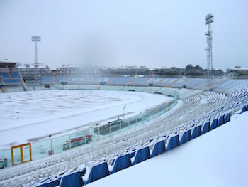 PESCARA – Di seguito riportiamo il comunicato della Prefettuta di Pescara che annuncia il rinvio della partita del campionato di serie B tra Pescara e Juve Stabia. Ad una settimana dunque di distanza dal rinvio della partita casalinga contro la Reggina (che verrà recuperata il venerdì 24 febbraio alle 20.45) una nuova gara fermata dalla neve.