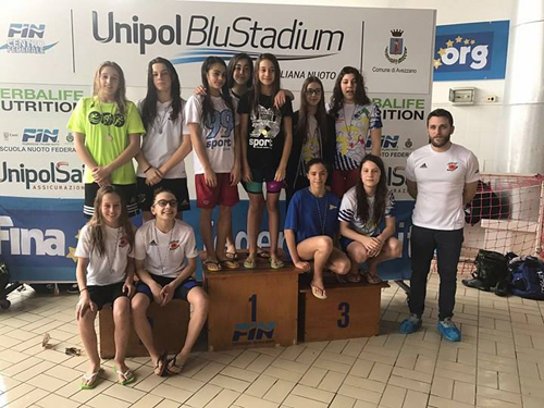 nzo: Matteo Cucinelli 1500 stile, Andrea Di Marco 1500 stile, Sara Di Marco 200 dorso, Federico Iannicca 1500 stile, Sofia Di Giammatteo 400 misti, Staffetta 4×100 mista sostenuta da Veronica Ranalletta, Sara Di Marco, Claudia Carretta e Beatrice Calzetta.