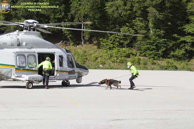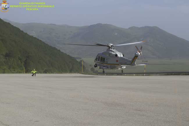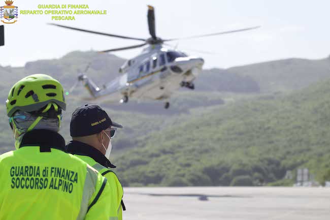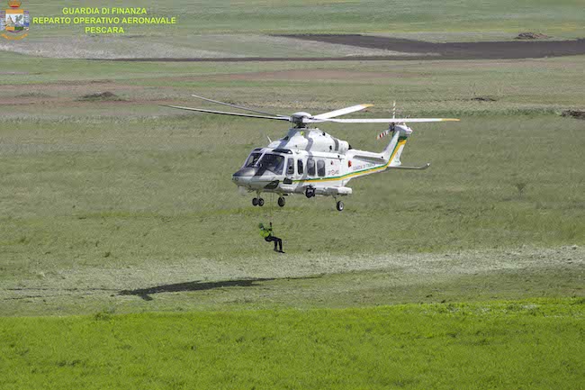 Le operazioni di trasporto e recupero dal sito dell’operazione sono state svolte dall’equipaggio della Sezione Aerea di Pescara, che ha messo a disposizione un elicottero PH-139D dotato di sofisticate strumentazioni utilizzate per le ricerche di persone ed in grado di supportare, in uno scenario operativo integrato, il personale S.A.G.F. impiegato nei diversi contesti emergenziali.