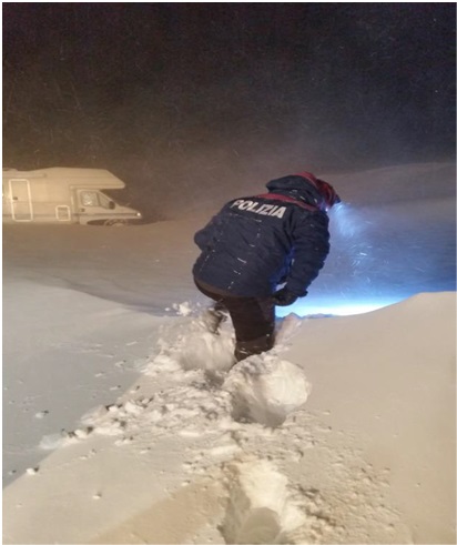 ROCCARASO – Nella serata di ieri il personale della polizia di stato, in servizio di soccorso e sicurezza in montagna nella localita’ sciistica Aremogna a Roccaraso, ha ricevuto una segnalazione, da parte di un albergatore locale, di persone all’interno di camper che avevano lanciato un “S.o.s.” dal piazzale Gravare, nella localita’ sciiistica.