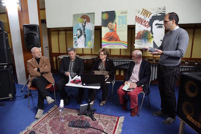 Ad aprire la serie di interventi è stato il giornalista Renato Marengo che, nel dare il benvenuto a tutti i presenti ha portato i saluti del Maestro Franco Bixio, che ha ospitato la presentazione negli studi Trafalgar. “In questi studi”, ha ricordato Marengo, “sono nate tutte le colonne sonore più importanti del cinema italiano e hanno registrato buona parte della musica italiana internazionale, da Ennio Morricone a Louis Bacalov, passando per Keith Emerson. Tony Del Monaco è stato protago