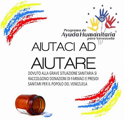 Il Venezuela attualmente sta attraversando una gravissima emergenza sanitaria, una condizione divenuta ancora più delicata per l’indebolimento del diritto alla salute e per la carente risposta del sistema sanitario nazionale a fronteggiare la richiesta dei servizi sanitari essenziali. L’ Associazione CIRCOLO CULTURALE CHAIKHANA, aderisce al programma “AIUTACI AD AIUTARE” e invita le Associazioni, enti e cittadini italiani, italo venezolani e pubblico in generale alla presentazione del suddetto programma.