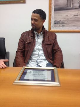 É un Rauf commosso quello che entra nella sala della giunta comunale di Roseto degli Abruzzi, alla presenza di una ventina di persone tra giornalisti e fotografi, che lo hanno accolto con calore. Il sindaco di Roseto, Enio Pavone, ha consegnato una targa commemorativa al Califfo che si è emozionato, senza essere riuscito a trattenere le lacrime. Evidentemente, non si aspettava che Roseto non lo avesse dimenticato. Bello l’intervento da parte di Ruaf in merito al ricordo più bello della sua avventura a Roseto: sulla spiaggia, in un momento di relax con la famiglia, una bambina rosetana prese la mano di uno dei figli di Mahmoud ed iniziò a giocarci. Un gesto che secondo Rauf dimostra la generosità degli abitanti di questa città, indubbiamente, per usare le sue parole, “il posto più bello dove ho giocato, per il calore della gente e attaccamento alla pallacanestro”. Rauf non vede l’ora che sia domani sera (venerdì) per tornare al PalaMaggetti e riabbracciare i vecchi amici che “non mi hanno mai dimenticato – dice l’americano – e hanno supportato me e la mia famiglia in un momento di difficoltà, quale la malattia di mio figlio Ammar”.