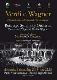 ROSETO DEGLI ABRUZZI (TE) – Verdi e Wagner si “incontrano” nel bicentenario della loro nascita e nel ventennale dell’attività dell’associazione musicale “Gioacchino Rossini”. Questa l’originale idea che ispira il primo degli appuntamenti concertistici della XX edizione del “Rosburgo Music Festival”, in programma oggi, 8 settembre, alle ore 21.15, nel parco della Villa Comunale.