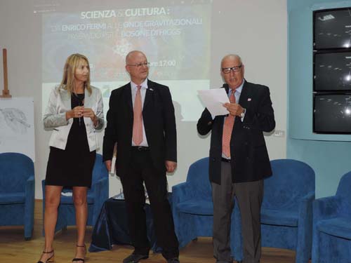 Protagonisti del Forum sono stati Luisa Cifarelli, Presidente della Società Italiana di Fisica; Eugenio Coccia, Direttore del Gran Sasso Science Institute de L’Aquila; Elena Cuoco, Fisico; e lo scrittore e giornalista Bruno Arpaia. Ad aprire l’evento è stato il videomessaggio di Fabiola Giannotti, socia onoraria Rotary e Direttrice del Cern, la quale ha fatto da apripista al dibattito annunciando “la soddisfazione per le ultime due scoperte firmate anche da scienziati italiani proprio al Cern, il Bosone di Higgs e le onde gravitazionali, scoperte avvenute a pochi mesi di distanza l’una dall’altra ed è una fortuna rara per un fisico poter assistere a due momenti di tale rilevanza mondiale nell’arco di pochi mesi”.