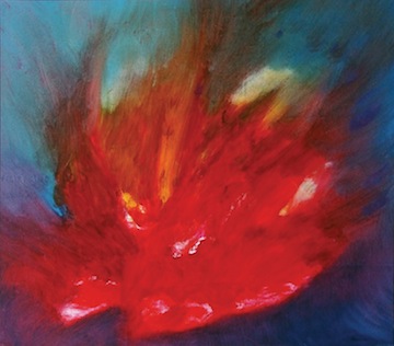La sua pittura è un trionfo di materia e luce, che conduce a continue metamorfosi, tra epifanie di bagliori cosmici e paesaggi mentali di magmi incandescenti: traiettorie vitali e dinamiche di infinite particelle in movimento, che si concretizzano nella sua arte
