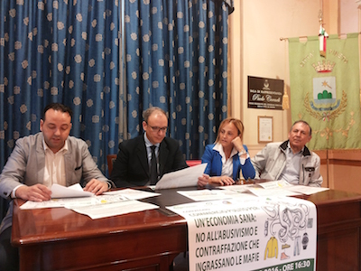 PINETO (TE) – “Commercio pulito per un’economia sana: no all’abusivismo e contraffazione che ingrassano le mafie” è il tema del convegno presentato ieri mattina nel corso di una Conferenza Stampa che ha avuto luogo a Villa Filiani a Pineto alla presenza di Biagio Iezzi, Presidente dell’Associazione Commercianti e Artigiani di Pineto, Daniele Erasmi, Presidente Regionale Confesercenti Abruzzo, Gabriele Nardi Vice presidente Anva Teramo, Robert Verrocchio, Sindaco di Pineto e Massimina Erasmi, Consigliera di maggioranza con delega al Commercio.