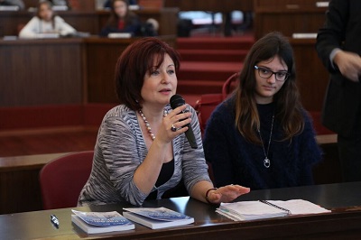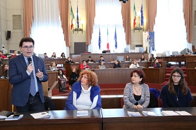 PESCARA – Sala Consiliare gremita per ascoltare Valeria Montemurro, ospite della rassegna Autori a scuola a cura dell’Istituto Comprensivo 4, organizzata da Valentina Palleri (insegnante alla scuola ‘Pascoli’), in collaborazione con l’associazione ‘Amico Medico’ e con il patrocinio del Comune di Pescara, che ha visto a Palazzo di Città centinaia di alunni delle scuole medie Michetti e Pascoli ascoltare con attenzione e commozione il racconto della ragazza.