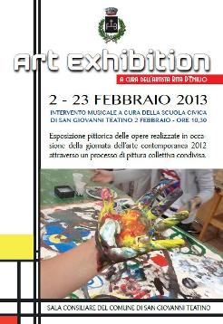 Da sabato 2 febbraio presso la sala consiliare saranno esposti i lavori pittorici eseguiti da giovani ed adulti durante la Giornata dell’Arte Contemporanea 2012. La performance è stata guidata da Rita D’Emilio con il patrocinio dell’amministrazione comunale