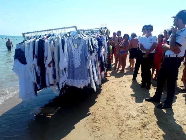 SAN SALVO – Ieri mattina una pattuglia della Polizia Locale, guidata dal comandante Giuseppe Del Moro, ha sequestrato diversi capi di abbigliamento venduti abusivamente sulla spiaggia di Vasto Marina. Gli agenti hanno rinvenuto la presenza di alcuni carrelli con un consistente numero di capi di abbigliamento, merce che è stata prontamente sequestrata per vendita non autorizzata.
