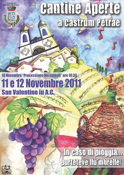 SAN VALENTINO (PE) – Gli amanti di castagne e vino novello si danno appuntamento venerdì 11 e sabato 12 novembre a San Valentino in Abruzzo Citeriore (Pe), per l’edizione 2011 di “Cantine aperte a Castrum Petrae”, celeberrima festa del vino che ormai da dieci anni anima il centro storico di uno dei borghi più caratteristici della Val Pescara. Il tam tam mediatico che ha preceduto l’evento fa prevedere il tutto esaurito: se l’anno scorso, infatti, si sono sfiorate le undicimila presenze, quest’anno gli oltre 20 pullman già prenotati in partenza da Pescara e Chieti, confermano questa tendenza.