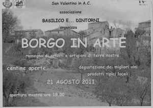 PESCARA – Oggi,21 agosto, a partire dalle ore 18 e fino a tarda sera, nella contrada Basilico, nel territorio di San Valentino (che rientra tra i “borghi autentici” d’Italia) , 15 artisti e artigiani esporranno le loro opere . Un pomeriggio dedicato all’arte con l’evento “Basilico in Arte” grazie al quale gli angoli più suggestivi del territorio saranno dedicati alla pittura, all’artigianato, alla poesia e alla musica senza tralasciare la buona tavola e disdegnare la degustazione di alcune prelibatezze locali.