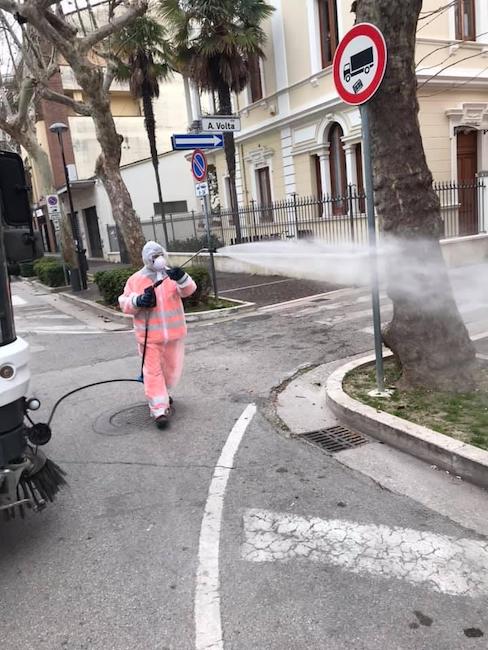 GIULIANOVA – Verrà effettuato, nella notte tra lunedì 30 e martedì 31 marzo 2020, a partire dalle ore 21.00, un secondo intervento di sanitizzazione delle strade di tutto il territorio comunale, frazioni comprese. Le operazioni verranno eseguite da operai speciali con ausilio di mezzi della Sochil Verde, attraverso l’utilizzo di prodotti certificati e garantiti dal Ministero della Salute.