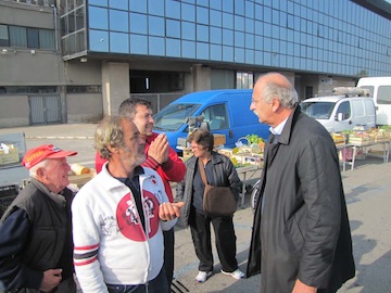 il mercato in realtà si è svolto regolarmente e con tranquillità nella nuova collocazione ormai stabilita da tre settimane : come sempre le bancarelle sono state sistemate lungo viale Kennedy, nel tratto a nord, ossia dal tratto successivo al Liceo Artistico sino all’incrocio con via Solferino; l’intera via Cadorna; via Diaz, nel tratto compreso tra via Cadorna e via Cavour; in via Settembrini e anche in via Solferino, in modo da garantire un posto a tutti. Purtroppo per ora c’è un’eccedenza di 16 produttori-contadini: ovvero in graduatoria ce ne sono 72, ma con le attuali disposizioni siamo riusciti a garantire spazi solo per 56 operatori, una situazione legata, purtroppo, ai lavori ancora in corso in via Settembrini. E, come ho già detto in precedenza, non appena quei lavori si saranno conclusi, saremo in grado di dare un’idonea sistemazione a tutti e addirittura di aumentare anche il numero dei contadini. Purtroppo oggi 12 dei 16 contadini non hanno però digerito pienamente il dispositivo e hanno deciso di inscenare una sorta di protesta, ossia hanno preso le proprie bancarelle e si sono sistemati sulle aree di risulta dell’ex stazione centrale, sul lato ovest della strada che conduce al parcheggio, a breve distanza dal mercatino dei senegalesi. Una protesta ovviamente simbolica, visto che quella collocazione non ha permesso loro di vendere alcunché, ma non appena ho saputo della decisione ho raggiunto i 12 operatori con i quali ho vol