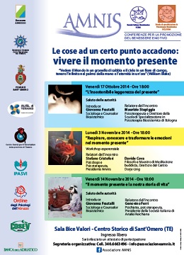S. OMERO (TE) – Per il consueto appuntamento di autunno, l’associazione Biosistemica Amnis organizza una serie di eventi culturali presso la Sala Bice Valori, nel centro storico di Sant’Omero. Si partirà venerdì 17 ottobre, alle ore 18.00,con una conferenza dal titolo “L’insostenibile leggerezza del presente” alla presenza del Professor Maurizio Stupiggia, psicoterapeuta e direttore della scuola di Specializzazione in psicoterapia biosistemica di Bologna, introdotto dalla sociologa Giovanna Frastalli. L’incontro proporrà riflessioni e approfondimenti sulla consapevolezza nel momento presente, stimolando il pubblico ad agire verso una nuova coscienza fatta di piccole pratiche quotidiane, nuovi ritmi e spazi di ascolto; un tema di profondo interesse per addetti ai lavori e non solo.