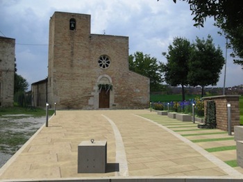 L’intervento, di concerto con la Soprintendenza ai Beni Culturali, in quanto trattasi di area archeologica vincolata, si pone nell’ottica di migliorare la valenza funzionale della zona adiacente l’edificio millenario.L’obiettivo verrà raggiunto sia attraverso la realizzazione di un nuovo piano di calpestio in materiale lapideo che attraverso la dotazione minima di alcuni elementi di pubblica utilità, quali sedute, cestini, fontana, piantumazioni varie (tappetino verde, cespugli ed alberature) in grado di rendere più confortevole la permanenza dei visitatori e utenti dell’edificio sacro.