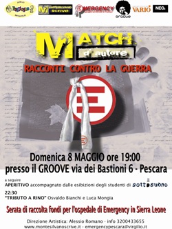 Promosso dall’Associazione “Montesilvano Scrive” e dal gruppo Emergency di Pescara, il concorso permetterà di raccogliere fondi per un ospedale in Sierra Leone. Il vincitore verrà proclamato domenica prossima 8 maggio al locale “Groove” di Pescara.