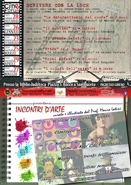 SAN GIOVANNI TEATINO (CH) – Contro alla rovescia per gli appuntamento con il cineforum “Scrivere con la luce” che quest’anno sarà dedicato a “I colori dell’anima, le intermittenze del cuore“ ovvero Quando il cinema incontra la letteratura e l’arte, organizzato dalla biblioteca comunale, dall’Istituto comprensivo di San Giovanni Teatino, in collaborazione con l’associazione culturale “Tu…sei Arte”.