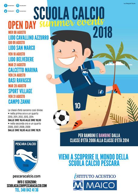 SCUOLA CALCIO PESCARA 2018 – 2019, OPEN DAY AGOSTO