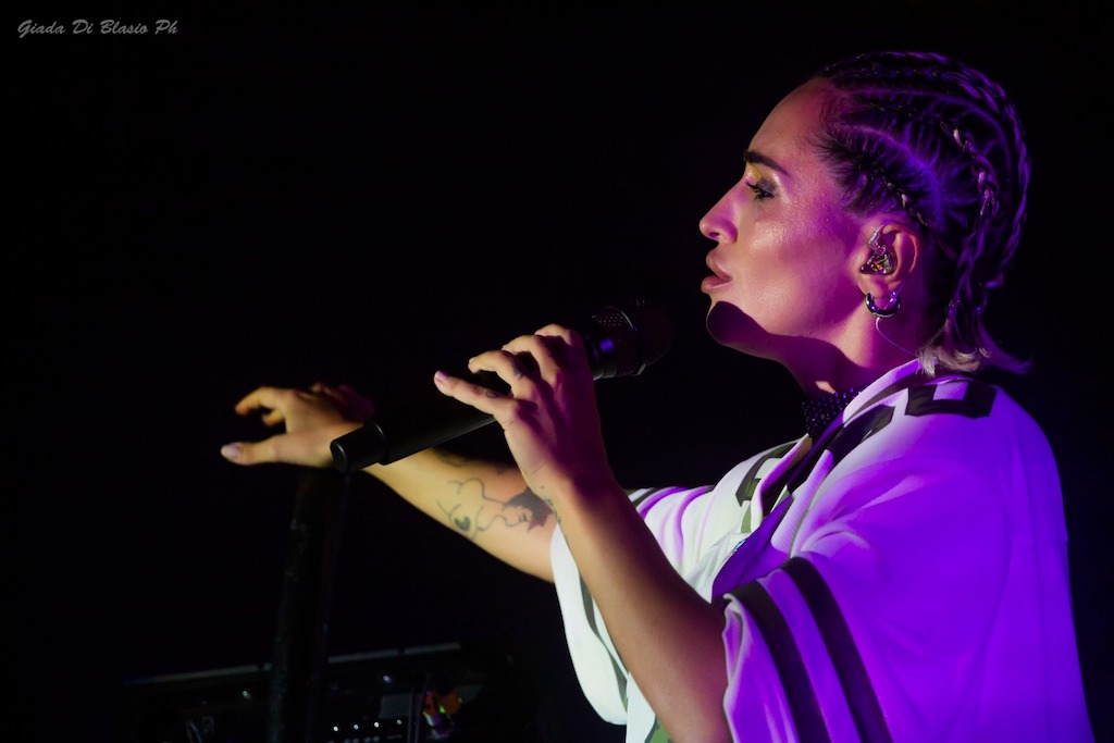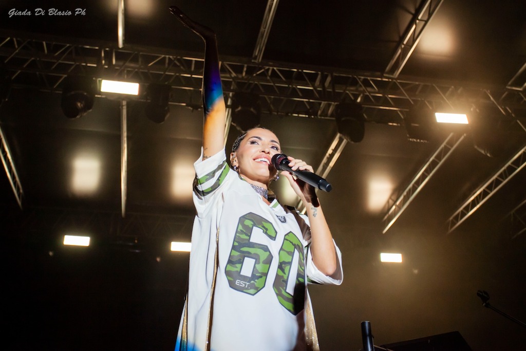 La serata si è aperta con La Zia, brano manifesto del suo stile ironico e affilato, seguito da Like a Melody e Andamento Lento, dove la voce ha giocato con le dinamiche e i silenzi. Il pubblico ha risposto con entusiasmo a Je So’ Pazzo e Alleria, tributi sentiti alla scuola napoletana, mentre Magic Puglia e Baccalà hanno celebrato le sue origini con groove e ironia.