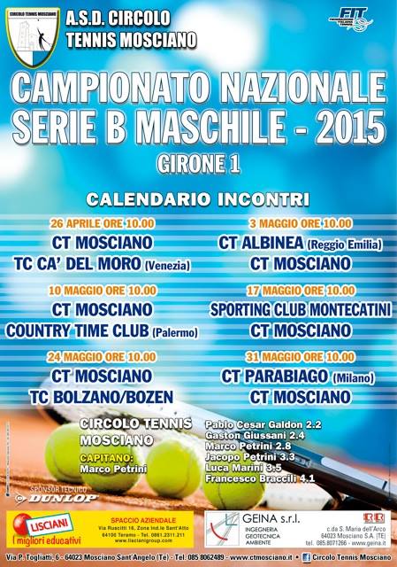 rone 1: il Circolo Tennis Mosciano è inserito nel girone 1 insieme a: Sporting Club Montecatini, TC Cà del Moro, Circolo Tennis Albinea, TC Bolzano/Bozen, Country Time Club Palermo, Circolo Tennis Parabiago.
