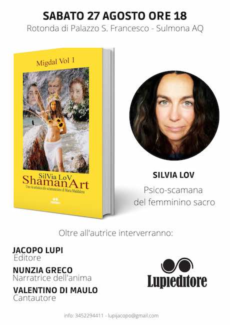 SULMONA – Sabato 27 Agosto alle 18 nella Rotonda di Palazzo S. Francesco verrà presentato il libro “ShamanArt – Migdal volume 1: una Via Artistica allo Sciamanismo di Maria Maddalena” della psico-sciamana Silvia Lov edito da Jacopo Lupi Editore.